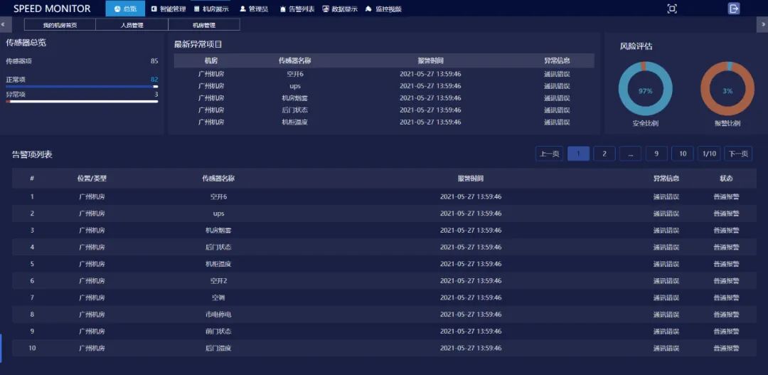 实现配电、UPS、蓄电池、空调运行、温湿度、漏水、视频、网络系统等安全情况实时监测