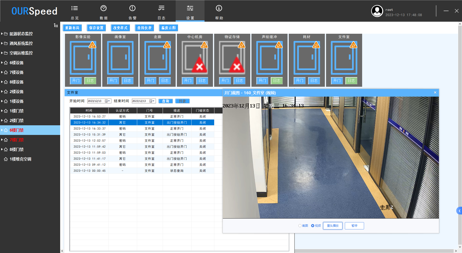 2023年,我们整合部分特定场所的用户需求,特别是重点的库房、配电房、机房,在关于安全管理监控方面做一些优化和提升的功能,将区域内的视频安防监控与出入口的的门禁控制联动起来,当有人在出入口(放到报警系统设防时)进入安装控测器的房门时,监控将会自动切换到相应区域的图像信号并开始录像,实时对进出出入口的人员进行特定的录像记录,可以进行截图和录像保存,即进入流程可溯源监控门禁联动,流程开始后即可记录相应时间的房间人员使用情况,联动监控摄像头对整体实验情况进行整体流程监控。