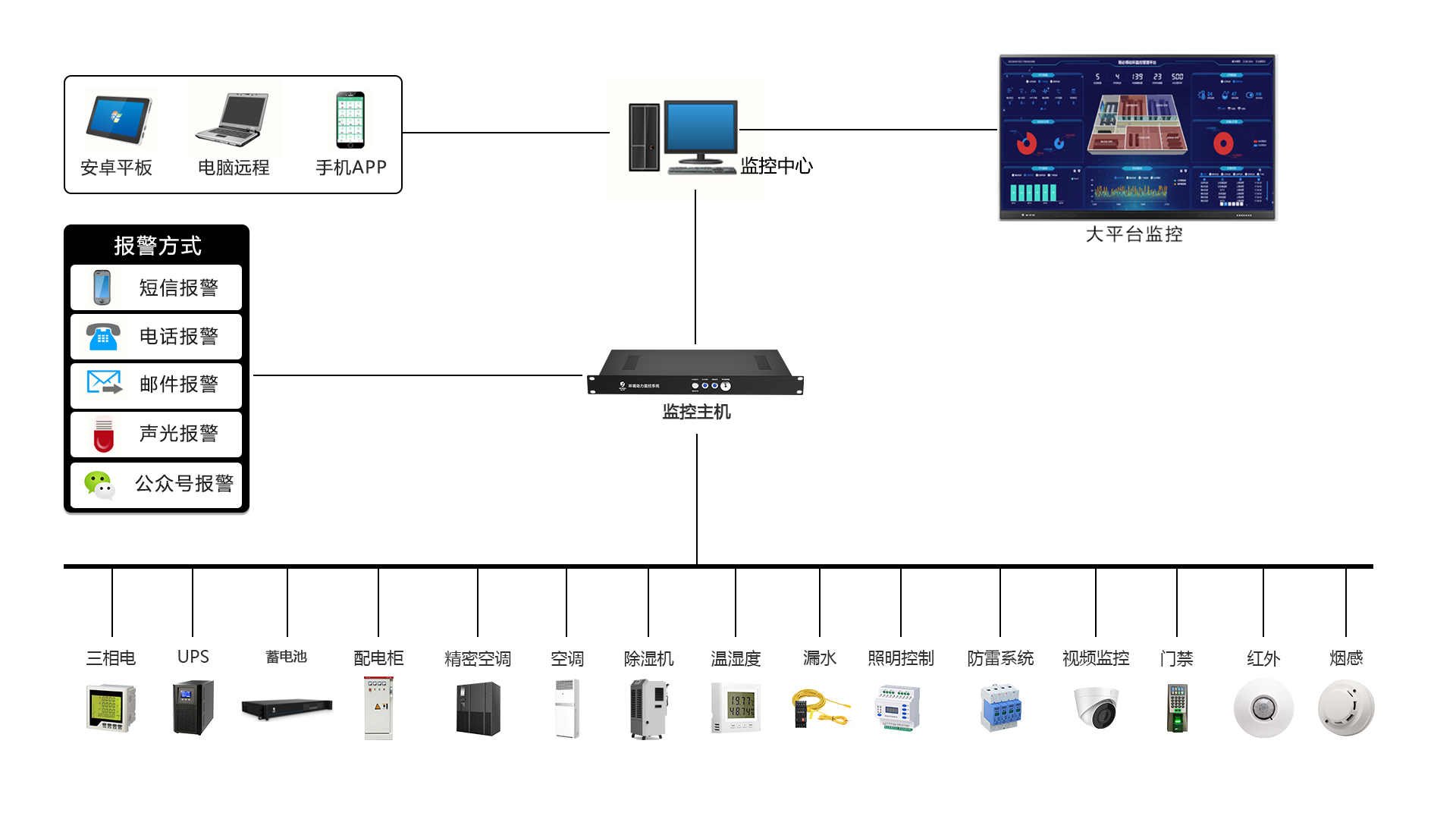 为机房内各系统及设备运行提供高度稳定可靠的监控信息资源,提供实时数据监测以及必要的远程控制、智能控制。