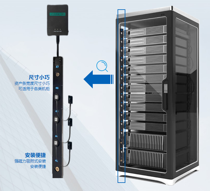 资产条 U 位高度可选配各种规格,可适配不同高度的机柜。