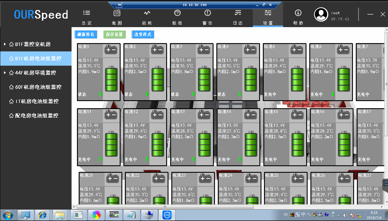 某项目要求在线监测蓄电池组,监测内容包括电池的单体电压、单体内阻、单体电池内部温度、组压、环境温度及充放电电流,并配置监测软件,远程读取并显示数据。一般机房电池是由于其中一节电池裂化后未妥善管理,电池急剧恶化导致爆炸着火,由于电池是串联及并联在使用,只要一节着火燃烧,整片瞬间会蔓延开来,导致大的火灾事故。