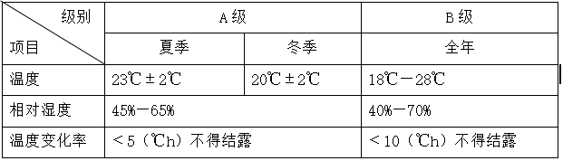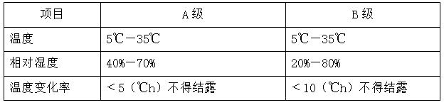 机房设备开机时和停机时对室内温度和湿度的要求见表一和表二。